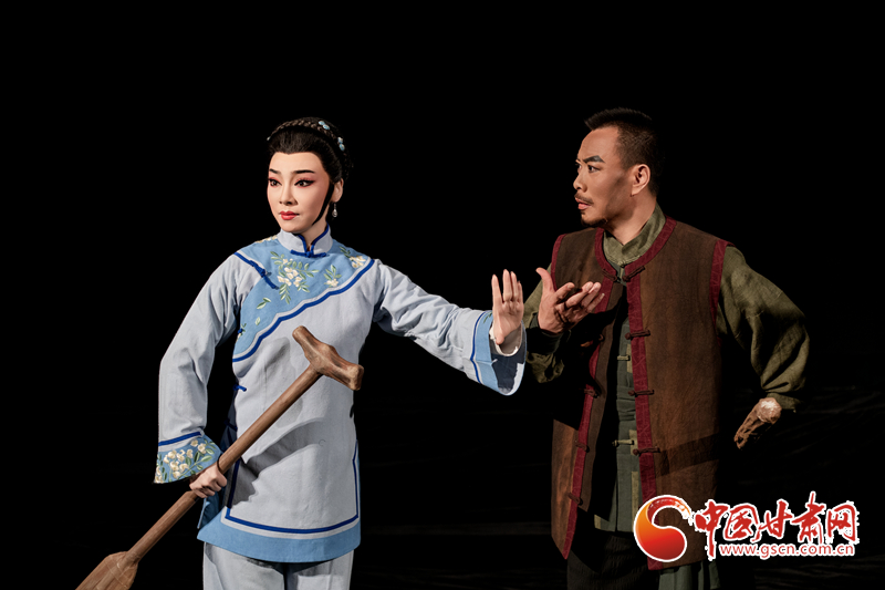 值得一提的是,演員的舞臺(tái)表演融入了“地游子步”“側(cè)身?yè)u晃”等隴劇特有的身段和表演樣式,彰顯出濃濃的隴劇藝術(shù)特色。