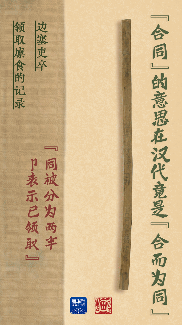 漢代人在簡(jiǎn)牘上書寫一個(gè)“同”字,從中間一分為二,由雙方當(dāng)事人各執(zhí)一半。需要核驗(yàn)時(shí),雙方將所執(zhí)半簡(jiǎn)合在一起,這樣就能拼成一個(gè)完整的“同”字。或許,這就是現(xiàn)代“合同”的來(lái)歷。