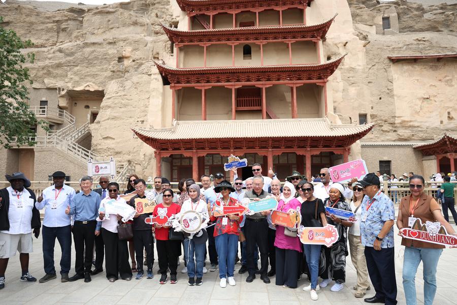 6月6日至8日,來(lái)自22個(gè)國(guó)家的駐華使節(jié)和高級(jí)別外交官走進(jìn)敦煌,尋訪莫高窟,游覽鳴沙山月牙泉景區(qū),參加河西走廊五市的文旅專(zhuān)場(chǎng)推介會(huì),并在對(duì)話會(huì)上共同探討“絲路精神推動(dòng)文明交流互鑒”。