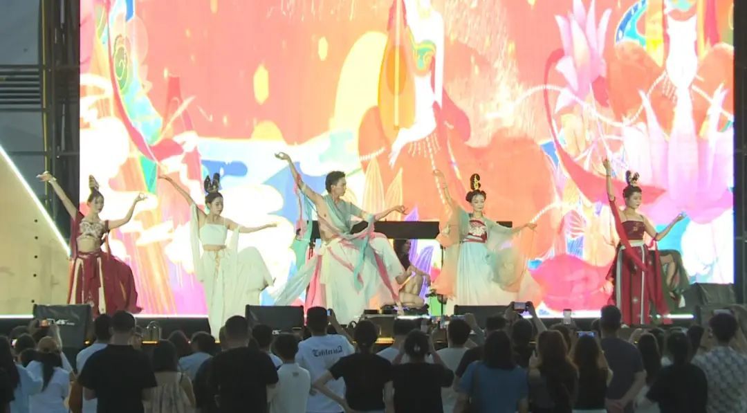 本次電音節(jié)以古老的“絲綢之路”為靈感源泉,巧妙融合了敦煌獨特的文化藝術(shù)和現(xiàn)代音樂元素?;顒蝇F(xiàn)場,觀眾沉浸在五彩斑斕的燈光秀和震撼人心的音響效果中,還能親身參與繪制飛天圖案、體驗傳統(tǒng)樂器演奏,深度感受敦煌的文化藝術(shù)魅力。