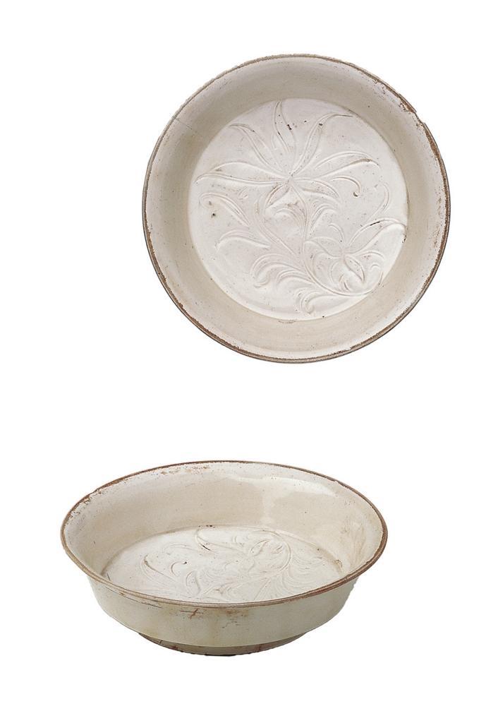 在不斷向前發(fā)展的過程中,定窯逐步形成了以刻畫花、印花見長的裝飾藝術(shù),此外還有貼花、剔花、描金等,有別于以釉色和造型取勝的宋代汝窯、官窯、哥窯和鈞窯四大名窯。豐富的裝飾題材,灑脫靈活的線條勾畫,增添了定窯瓷器的藝術(shù)性。