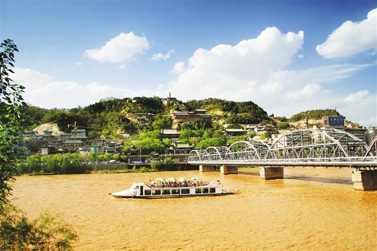黃河游船駛過蘭州中山橋