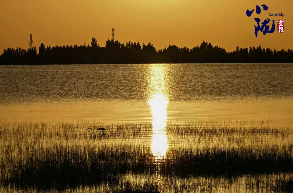落日余暉下,濕地的水面上泛著暖融融的金光,顯得那么靜謐。此時的濕地,演繹著一個和白天完全不同的自己,似一幅色彩斑斕、意蘊(yùn)萬千的畫卷。