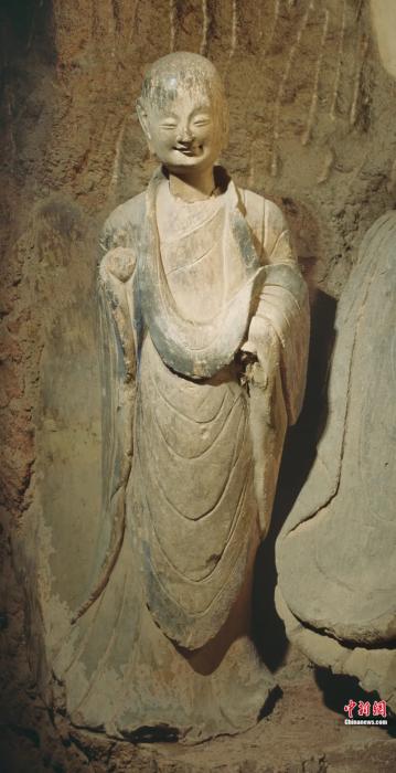 麥積山石窟造像的微笑更讓人親近,云岡石窟造像的微笑則神圣感更強(qiáng)。微笑表情在各個(gè)早期石窟中均有側(cè)重和不同,需要我們仔細(xì)感受和體味。當(dāng)然,這也說(shuō)明在石窟“大家庭”中,每個(gè)石窟都是不可缺少的成員和構(gòu)成,都能各美其美,美美與共,魅力無(wú)限。