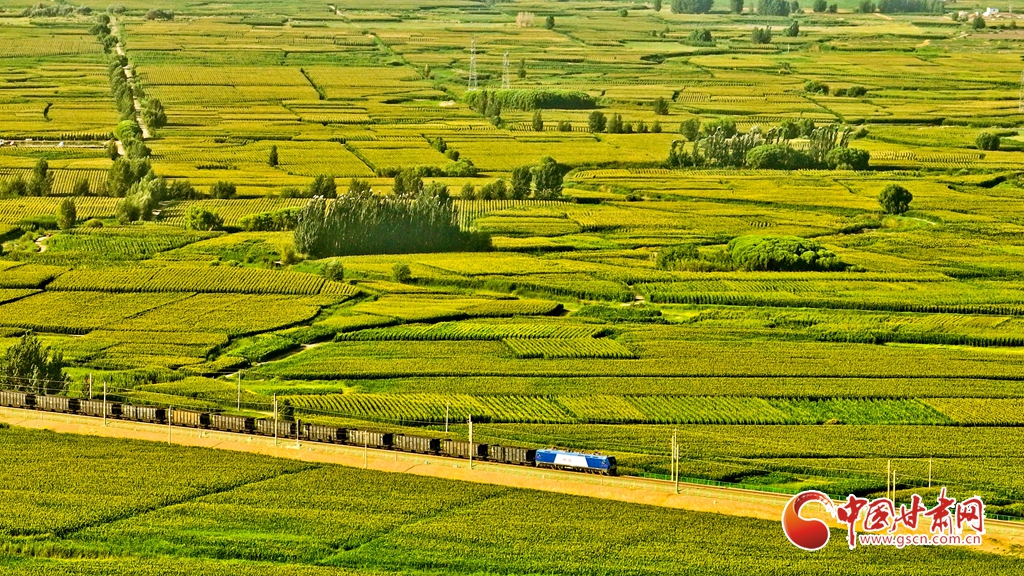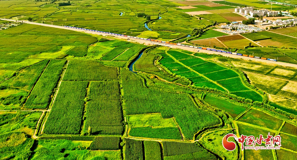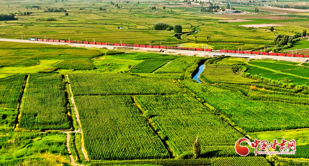 盛夏時(shí)節(jié),位于祁連山下的甘肅省張掖市甘州區(qū)烏江鎮(zhèn)萬(wàn)畝即將收獲的制種玉米生長(zhǎng)旺盛,宛若鋪了一層綠色的“巨毯”。綠油油的供港蔬菜基地上,種植農(nóng)戶(hù)們正忙碌采摘。田間林木,穿境而過(guò)的蘭新鐵路大動(dòng)脈和S237(蒙甘--青海)一級(jí)公路上,一列列火車(chē)、一輛輛汽車(chē)疾馳,勾勒出一幅幅美麗的田園生態(tài)畫(huà)卷。