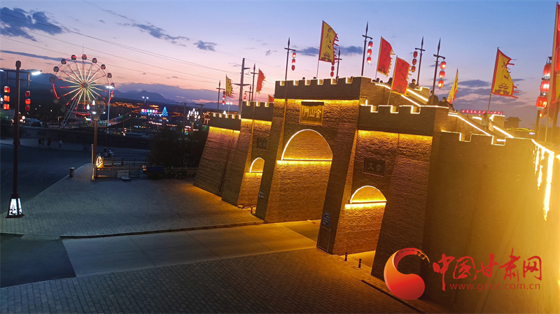 夏日的民樂夜晚,褪去了白天的熱度,輕撫的晚風(fēng)吹來20℃的夏天,祁連山下民樂成為一片避暑圣地。此刻,民樂古城已經(jīng)燈火璀璨,行走在古城的城墻上,遠(yuǎn)處的晚霞接近天邊,近處的涼風(fēng)帶來愜意,對于行走了一天的游客來說,無疑是一個放松打卡的好地方。