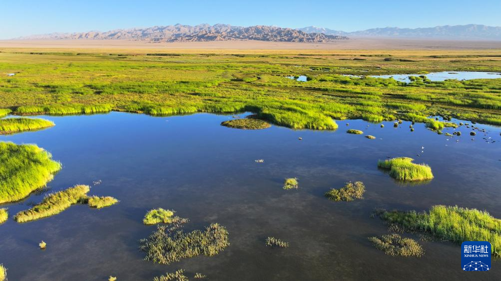 7月31日拍攝的大蘇干湖濕地景色(無人機(jī)照片)。新華社發(fā)(高宏善 攝)