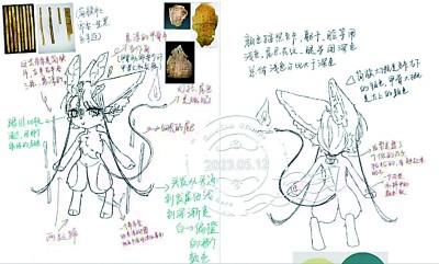 “這是我們?cè)O(shè)計(jì)的吉祥物‘活字’,它的周邊懸浮著一圈漢簡(jiǎn),頭是動(dòng)漫風(fēng)格的獸首,兩個(gè)獸角是甲骨片的樣式,棕色的身體呼應(yīng)了埋藏西北漢簡(jiǎn)的沙漠。”負(fù)責(zé)工作室運(yùn)營(yíng)的學(xué)生興致勃勃地介紹著設(shè)計(jì)圖。他們告訴記者,吉祥物尾巴參照三星堆青銅神樹做成了燈盞的樣式,上面承載一個(gè)火種。它既有指引之義,又象征著中華文化傳承不滅。