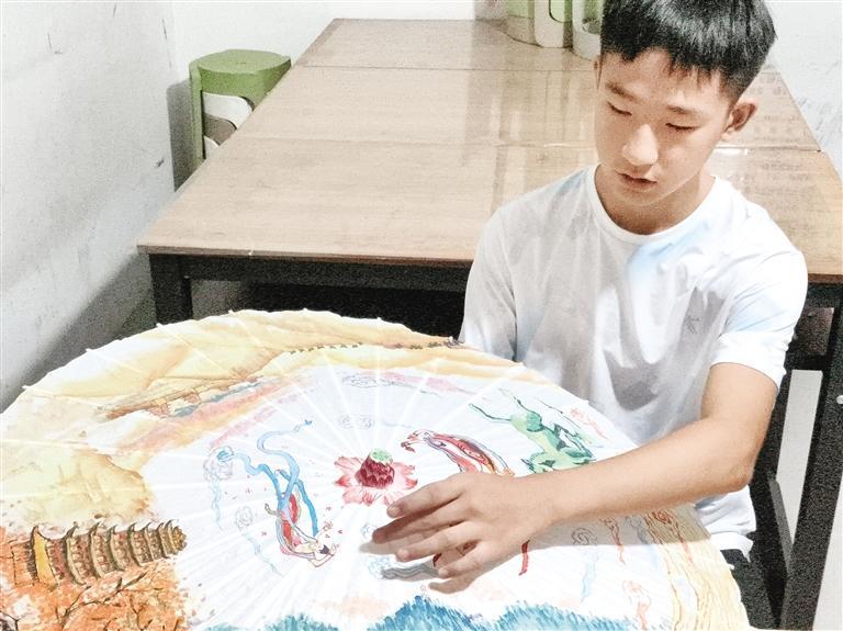 原標(biāo)題:少年執(zhí)筆繪巧思在油紙傘上講述絲路故事