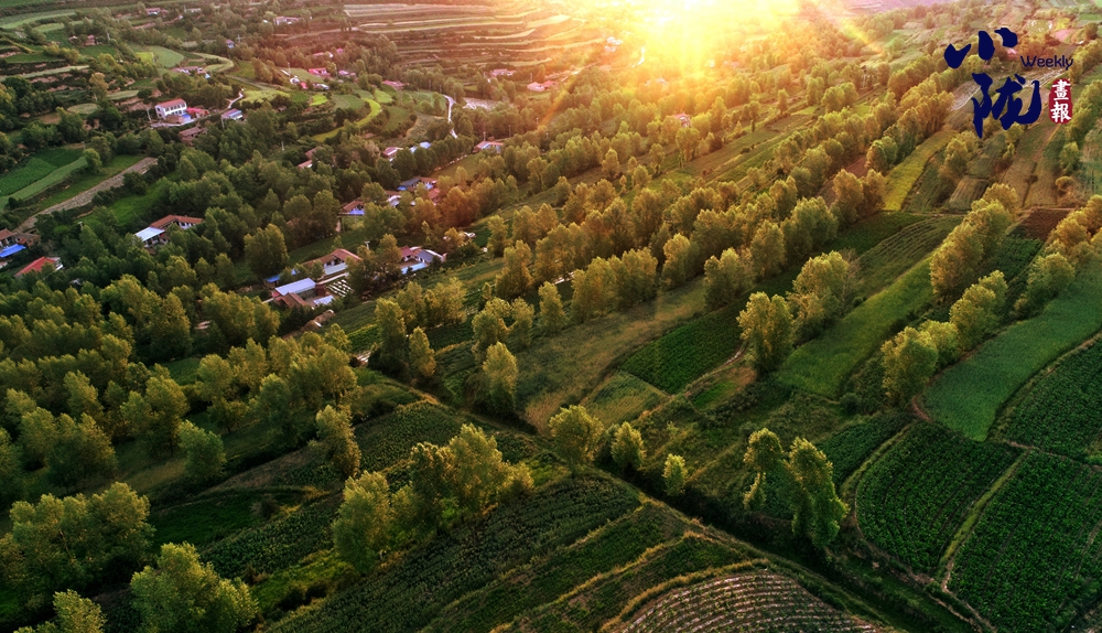 農(nóng)田與村莊、河流、綠樹交相輝映,與晨光交織在一起,形成一幅溫馨的畫面。此時的村落,靜謐而祥和。