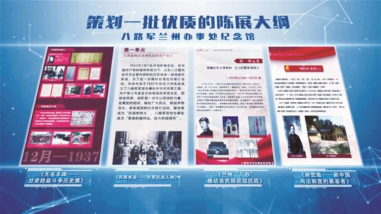 《指尖上的蘭州“八辦”——紅色文旅融合發(fā)展案例》,是八路軍蘭州辦事處紀(jì)念館近年來在打造“網(wǎng)上紅館”、積極推動紅色文化傳播與新媒體展示深度融合的前提和背景下,全面總結(jié)和提升紅色旅游宣傳推廣實效精心推出的紅色文化精品數(shù)字資源。