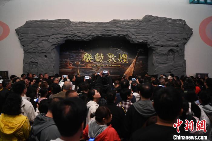 圖為游客觀看大型洞窟式沉浸體驗(yàn)劇《樂動敦煌》。九美旦增 攝