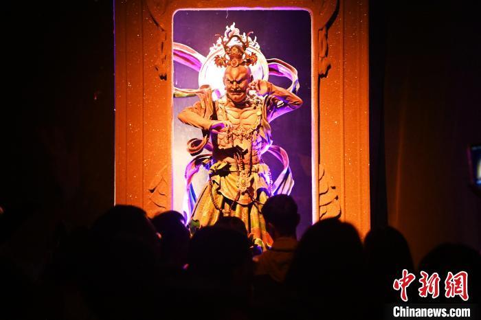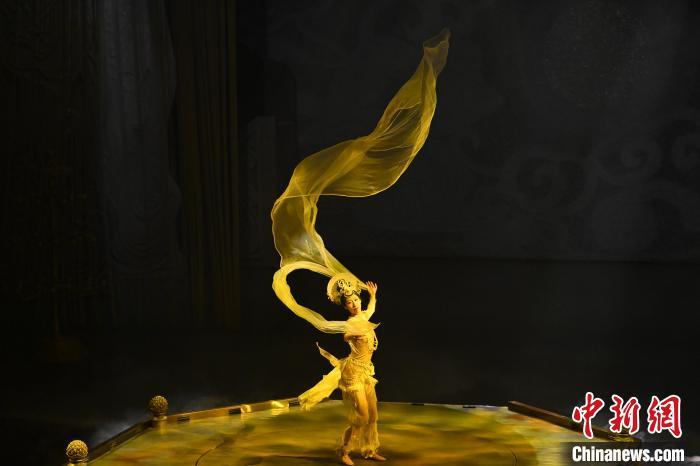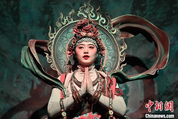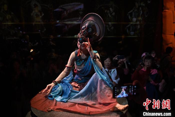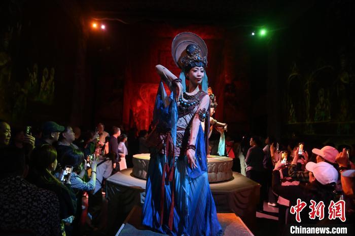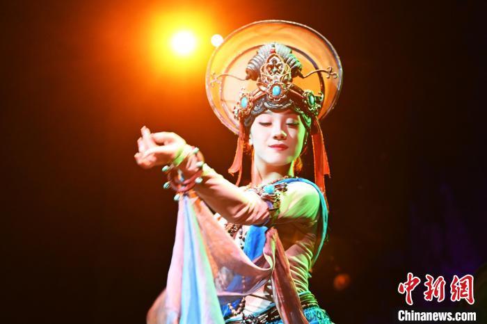 圖為演員在大型洞窟式沉浸體驗(yàn)劇《樂動敦煌》中表演。九美旦增 攝
