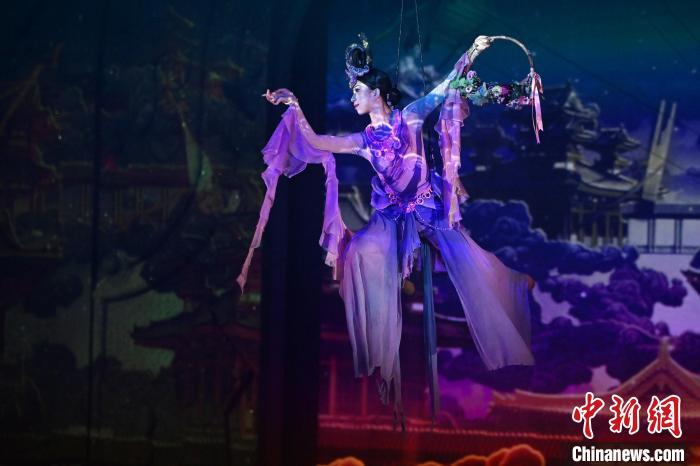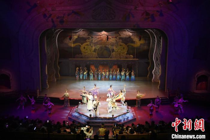9月5日晚,甘肅敦煌旅游熱度不減,眾多游客觀看大型洞窟式沉浸體驗(yàn)劇《樂動敦煌》。該劇溯源敦煌文化,借助對莫高窟壁畫、藏經(jīng)洞古籍進(jìn)行解讀,用全息投影、3D威亞等高科技手段,以全沉浸式的呈現(xiàn)方式,演繹西域少年追尋藝術(shù)的傳奇故事。劇中運(yùn)用了琵琶、排簫、阮等民族樂器及仿制敦煌古樂器的音色,通過胡旋舞、腰鼓舞、琵琶舞等典型舞蹈,展現(xiàn)了敦煌壁畫中的樂舞盛景,全面展現(xiàn)敦煌傳承千年的樂舞文化魅力。九美旦增 攝