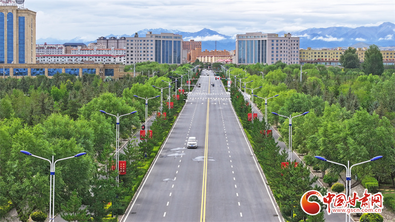 9月5日,雨過天晴的張掖民樂縣,城市清新如洗、生機盎然。云霧繚繞的山巒與高樓、民居、綠植相映成趣,繪出一幅如詩如畫的生態(tài)圖景。