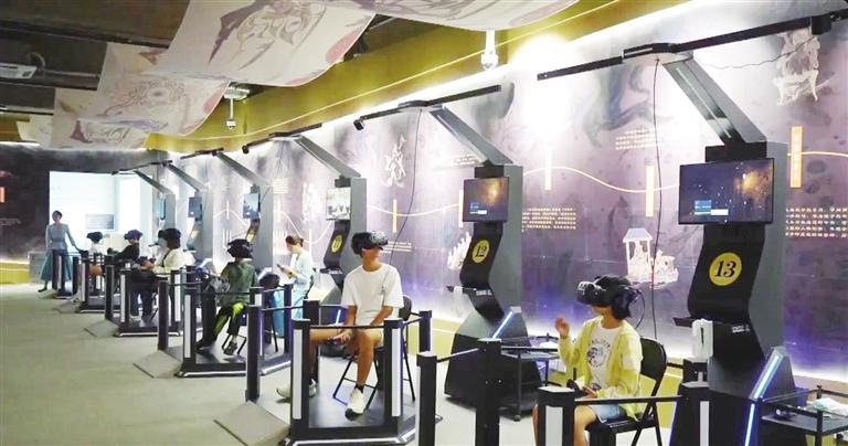 敦煌研究院與騰訊聯(lián)合打造了“尋境敦煌——數(shù)字敦煌沉浸展”,游客戴上VR眼鏡,跟隨能量體“摩靈”的指引,身臨其境“走進(jìn)”洞窟,360度自由探索洞窟細(xì)節(jié),不僅打破了時(shí)空束縛,穿越到1400多年前精妙絕倫的壁畫世界,還能“飛升”到窟頂,與“雷公”等“眾神”云端飛越,一同奏響天樂,身臨其境感受壁畫故事情節(jié),沉浸式感受敦煌文化的魅力。