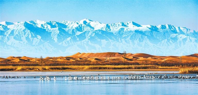 橫亙在我國西北部的祁連山脈,在它的南部形成了中國第一大內(nèi)陸咸水湖青海湖和青海境內(nèi)的第二大湖泊哈拉湖。而在它的最北部,石羊河、黑河、討賴河、疏勒河則孕育出以河西四郡為代表的片片綠洲,造就出河西走廊這條連接中外文明、連接起中國四大板塊、成就數(shù)千年民族交融的黃金大通道。