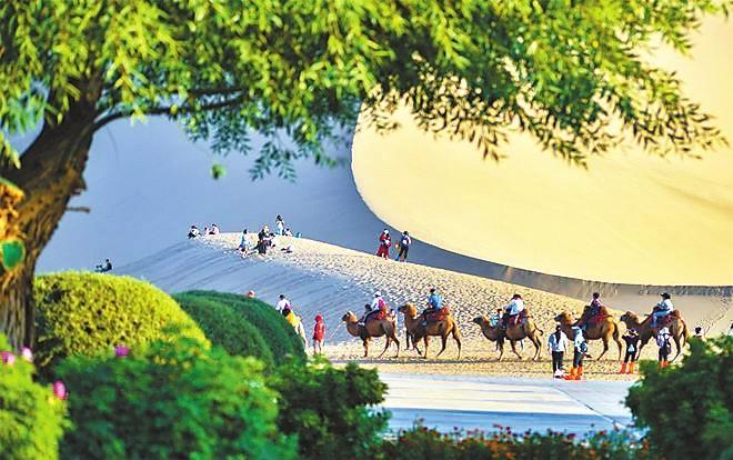 游客在鳴沙山游玩。(本版圖片均為資料圖)