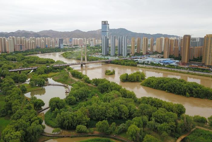 黃河沿岸的銀灘濕地公園。新華社記者 范培珅 攝