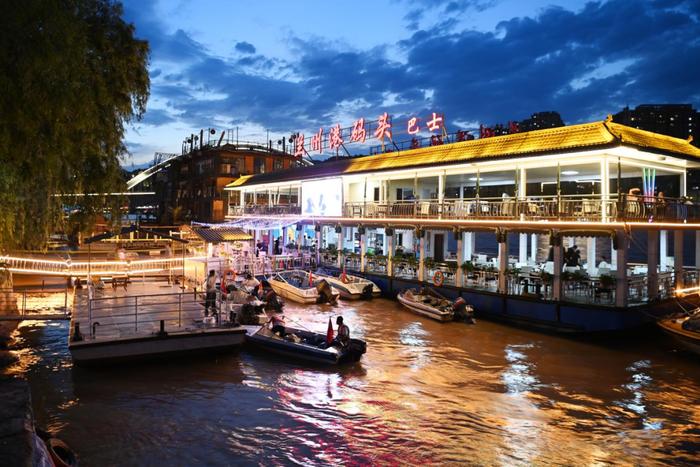 夜晚的蘭州港碼頭。新華社記者 范培珅 攝