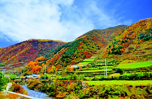 層林盡染的上河峪,龍溪河靜靜流淌在金色畫卷深處。掩映在村落間的貢生老宅墨香環(huán)繞,與河畔的闖王磨一起見(jiàn)證著這里的厚重歷史。魚躍山澗,山林秋色浸透,菊花漫來(lái)陣陣芬芳,這里多彩的山水訴說(shuō)著最美的秋日私語(yǔ)。紅葉如火,黃葉如夢(mèng),任誰(shuí)都不舍在這妙境中離去。(文宣)