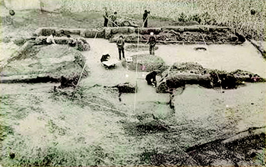 秦安大地灣遺址是1958年發(fā)現(xiàn)的,當時正值全國文物大普查,隨即被列為省級文物保護單位。1978年開始發(fā)掘,總面積110萬平方米,現(xiàn)揭露面積13700平方米,出土房址238座、灰坑357個,墓葬79座、窯38座、灶臺106座,各種骨、石、蚌、陶器、裝飾器和生活器物共計8034件。特別是房屋建筑遺址,不僅規(guī)模宏偉,而且形制復雜。在發(fā)掘中就被公布為全國重點文物保護單位。
