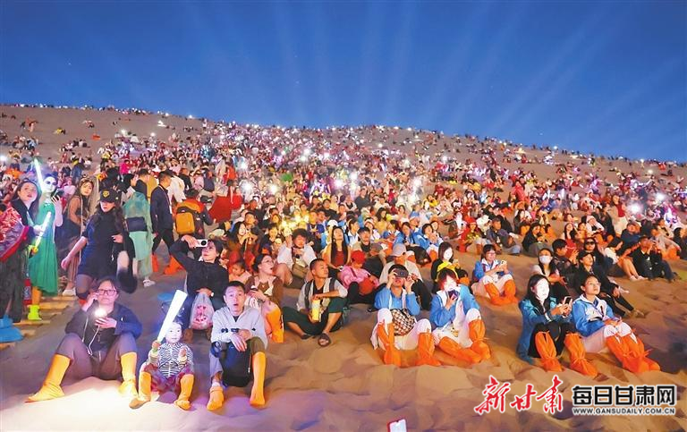9月19日,游客在鳴沙山參與“萬人星空演唱會(huì)”。 新甘肅·甘肅日報(bào)記者 田蹊 馮樂凱