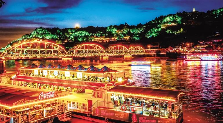 作為蘭州游的必打卡景點(diǎn),整個國慶假期中山橋上的游客絡(luò)繹不絕。每到傍晚,中山橋上更是人山人海,“金城壹號”“悠游蘭州號”“黃河啤酒號”等游輪載著南來北往的游客穿梭于黃河之上,為黃河之濱增添了一道流動的風(fēng)景。