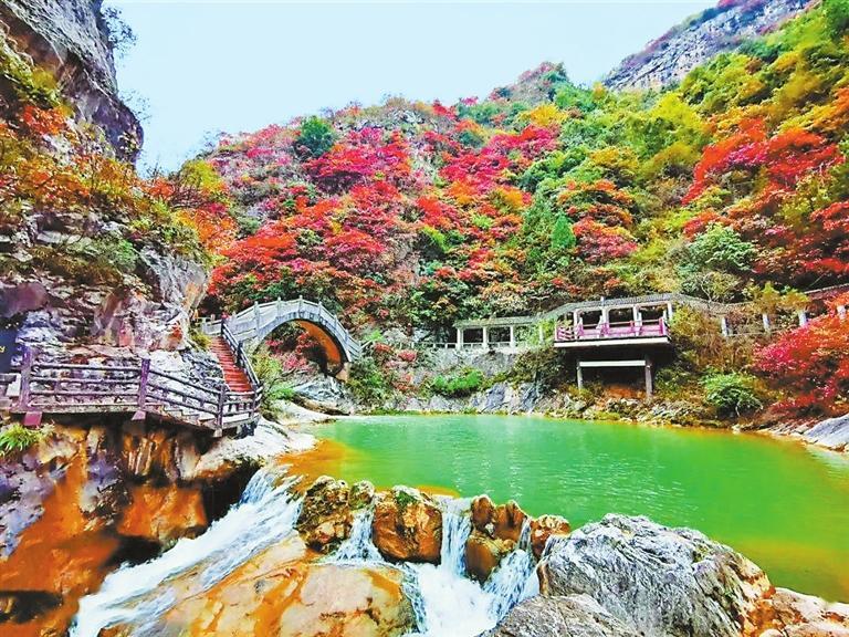 一路前行,途中不斷有紅葉映入眼簾,賞心悅目。這些紅葉伴著秋雨,疊映在綠樹叢中,五彩爛漫,紅綠相擁,顯得更加嬌媚和燦爛。最愜意路邊的一簇簇紅葉洋洋灑灑,昂揚向上,隨手采摘一片,細細觀賞,那紅葉上的雨滴晶瑩剔透,叫人喟嘆不是鮮花勝鮮花,更覺秋色勝春光。