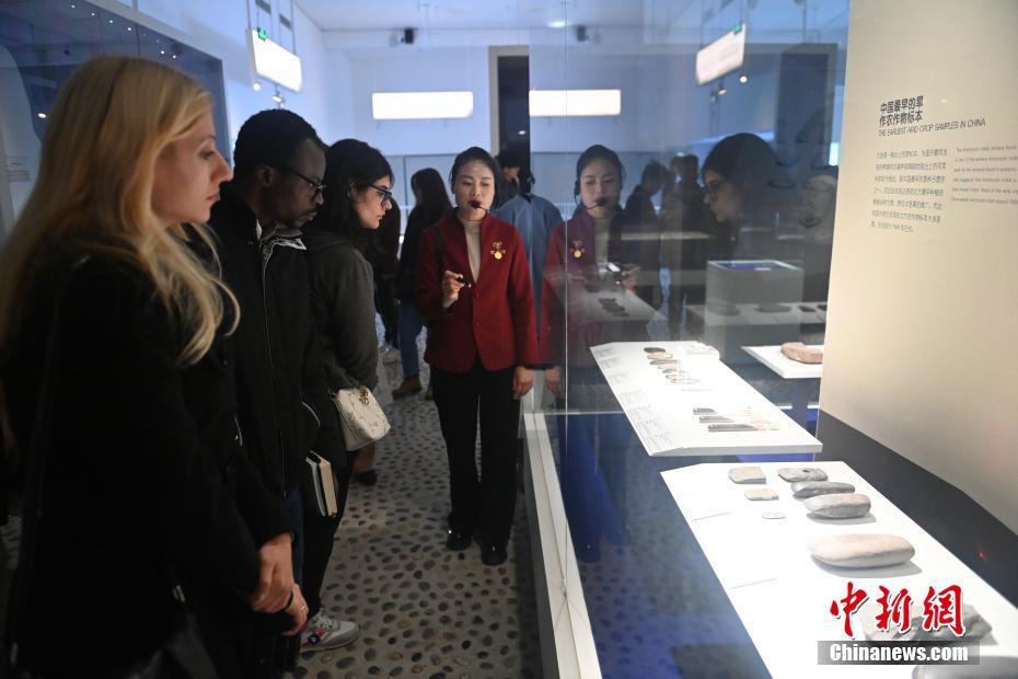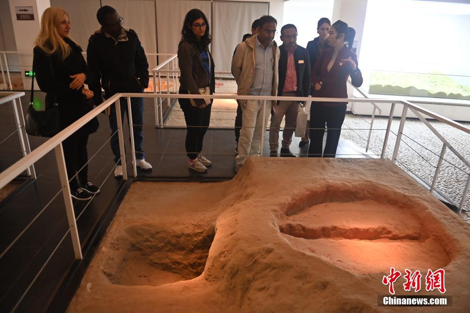 10月22日,2024青年漢學(xué)家研修計(jì)劃甘肅班團(tuán)隊(duì)22個(gè)國(guó)家的青年漢學(xué)家,走進(jìn)甘肅省天水市秦安縣大地灣遺址參觀并進(jìn)行專題研修。大地灣遺址是新石器時(shí)代大型聚落遺址,出土了中國(guó)乃至世界上最早的彩陶文化、最早的文字符號(hào)、種植生產(chǎn)了中國(guó)第一批糧食品種黍、出現(xiàn)了最早的宮殿式建筑、發(fā)明了世界最早的水泥地面、創(chuàng)造了最早的繪畫作品——F411地畫。圖為22國(guó)青年漢學(xué)家參觀大地灣遺址。中新社記者 李亞龍 攝