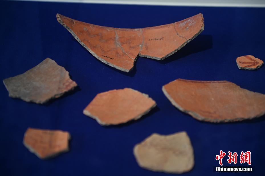 ?。保霸拢玻踩眨玻埃玻辞嗄隄h學(xué)家研修計(jì)劃甘肅班團(tuán)隊(duì)22個(gè)國(guó)家的青年漢學(xué)家,走進(jìn)甘肅省天水市秦安縣大地灣遺址參觀并進(jìn)行專題研修。大地灣遺址是新石器時(shí)代大型聚落遺址,出土了中國(guó)乃至世界上最早的彩陶文化、最早的文字符號(hào)、種植生產(chǎn)了中國(guó)第一批糧食品種黍、出現(xiàn)了最早的宮殿式建筑、發(fā)明了世界最早的水泥地面、創(chuàng)造了最早的繪畫作品——F411地畫。圖為大地灣博物館展品最早的文字符號(hào)彩繪符號(hào)陶片。中新社記者 李亞龍 攝