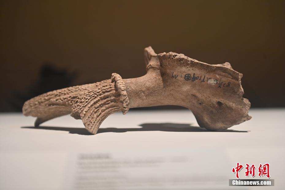 ?。保霸拢玻踩?,2024青年漢學(xué)家研修計(jì)劃甘肅班團(tuán)隊(duì)22個(gè)國(guó)家的青年漢學(xué)家,走進(jìn)甘肅省天水市秦安縣大地灣遺址參觀并進(jìn)行專題研修。大地灣遺址是新石器時(shí)代大型聚落遺址,出土了中國(guó)乃至世界上最早的彩陶文化、最早的文字符號(hào)、種植生產(chǎn)了中國(guó)第一批糧食品種黍、出現(xiàn)了最早的宮殿式建筑、發(fā)明了世界最早的水泥地面、創(chuàng)造了最早的繪畫作品——F411地畫。圖為大地灣博物館展品梅花鹿角。中新社記者 李亞龍 攝