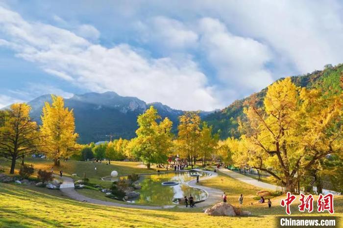 中新網(wǎng)蘭州10月28日電(高展)“霜降”過后銀杏黃。秋陽(yáng)映照下,甘肅隴南市徽縣嘉陵鎮(zhèn)田河村宛如披上絢麗新裝,詩(shī)意夢(mèng)幻。此地四周青山環(huán)抱,嘉陵江如靈動(dòng)絲帶蜿蜒流淌,水豐土腴、氣候溫潤(rùn),為銀杏營(yíng)造絕佳生長(zhǎng)環(huán)境?;湛h委副書記、縣長(zhǎng)王福全稱,銀杏,不僅承載著千年的歷史沉淀,更以其獨(dú)特的風(fēng)姿和韻味,成為徽縣一張亮麗的名片。