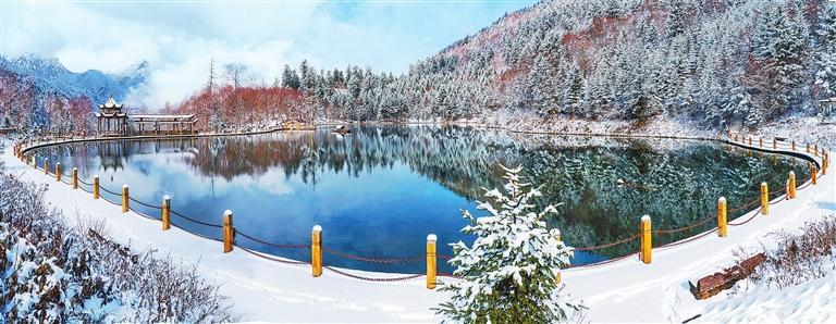眺望遠方,潔白的冰雪與擂鼓山遙相輝映,雪花盡飛處,仿佛細碎的春天早已鋪滿了原野。燕子湖的豐盈昭示著來年的風(fēng)調(diào)雨順,羊頭圖騰穿越千年的風(fēng)景,搖曳著鳳凰騰飛的美夢。一個個湖畔,色彩暖暖的羌式小屋,靜靜地享受著冬日的安寧與愜意。