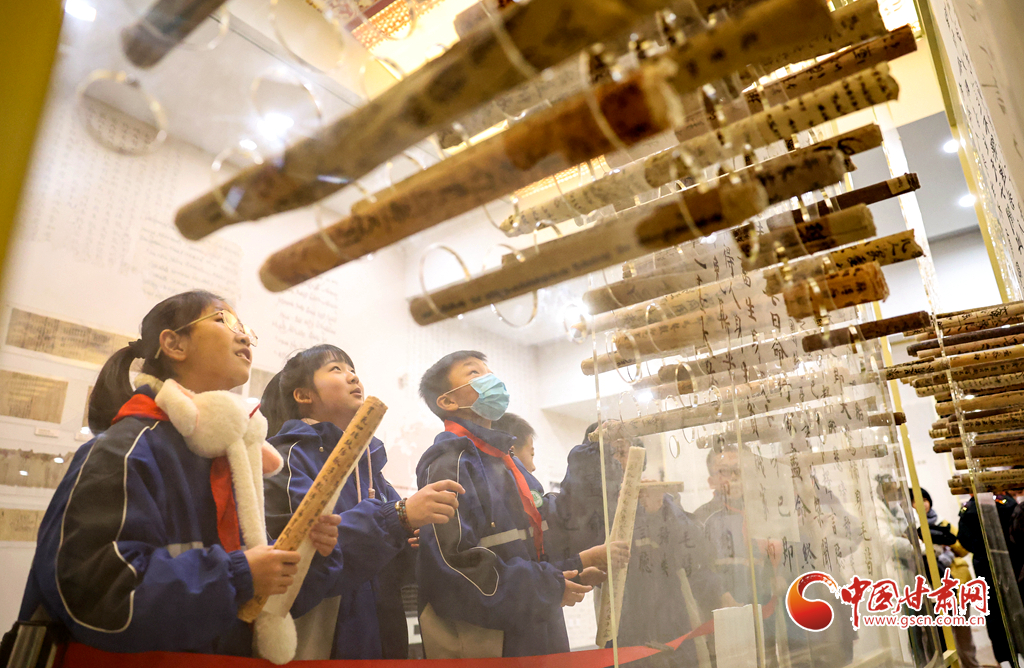 12月29日,蘭州市城關(guān)區(qū)安樂村小學(xué)學(xué)生在家人的陪同下來到敦煌研究院蘭州分院敦煌藝術(shù)館,欣賞“覺色敦煌 莫高精神”敦煌石窟藝術(shù)展,在周末時光近距離感受敦煌文化藝術(shù)的魅力。