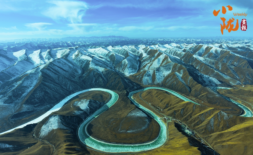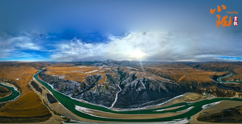 白雪皚皚的山梁、斗折蛇行的黃河,在陽(yáng)光下閃耀著金色的光芒,顯得格外耀眼和溫暖。