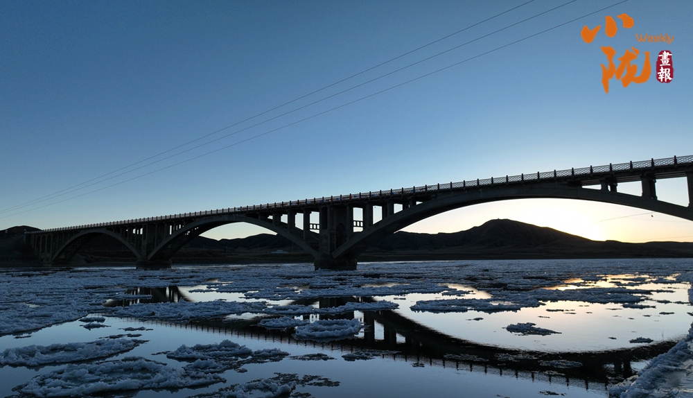 夕陽(yáng)西下,冰凌隨著河水順流而下,互相碰撞,猶如珍珠瑪瑙般璀璨,鑲嵌在母親河的懷抱之中。