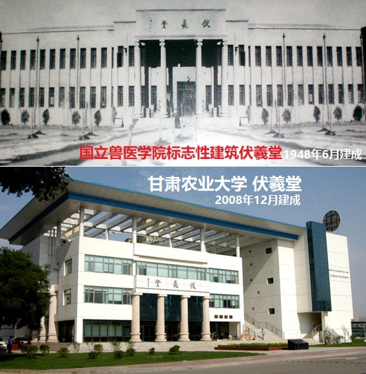 1946年10月國(guó)立獸醫(yī)學(xué)院成立后,于1948年6月建成了當(dāng)年蘭州最雄偉壯觀的建筑——伏羲堂。有深厚國(guó)學(xué)功底的校長(zhǎng)盛彤笙,為紀(jì)念人文始祖伏羲氏在認(rèn)識(shí)自然、適應(yīng)自然、改造自然和發(fā)展生產(chǎn)生活的過(guò)程中,所進(jìn)行的一系列造福人類的發(fā)明創(chuàng)造,將這幢教學(xué)大樓命名為“伏羲堂”,并親自撰寫(xiě)了一篇銘文《伏羲堂記》,“用追前烈,以志建堂之艱難”。