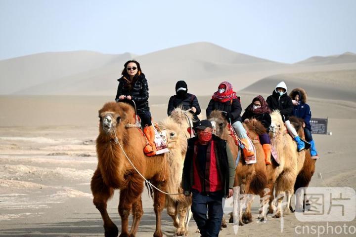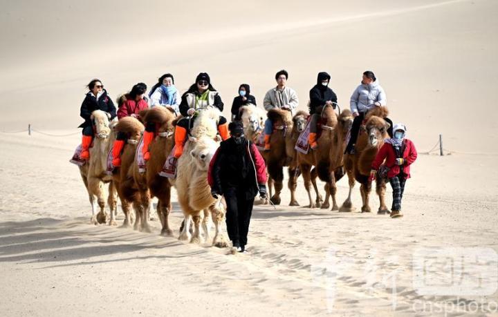 2025年3月2日,游客在甘肅省敦煌市鳴沙山月牙泉景區(qū)游覽。從3月1日開始,至3月31日,甘肅省敦煌市鳴沙山月牙泉景區(qū)、世界文化遺產(chǎn)玉門關(guān)遺址、敦煌雅丹世界地質(zhì)公園三大市屬景區(qū)推出門票半價(jià)優(yōu)惠政策,吸引游客走進(jìn)敦煌,欣賞大漠風(fēng)光,體驗(yàn)絲路風(fēng)情。中新社發(fā) 張曉亮 攝