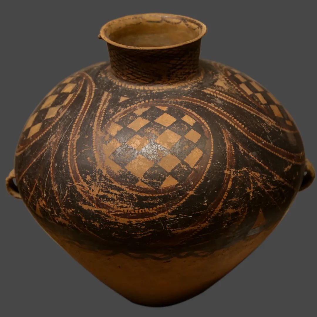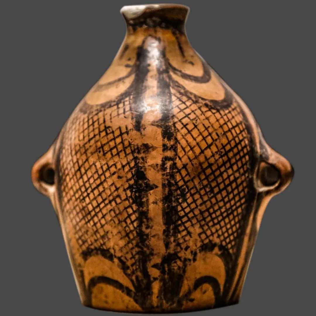 馬家窯文化如黃河上游的基因庫,約公元前3300年萌芽于甘肅定西臨洮,承仰韶文化西進(jìn)之火種,以洮河為血脈、黃土為肌理,在旋轉(zhuǎn)的陶輪間淬煉出黑彩翻涌的史前藝術(shù)密碼,成為西北大地孕育新石器文明的第一縷熾熱胎動。