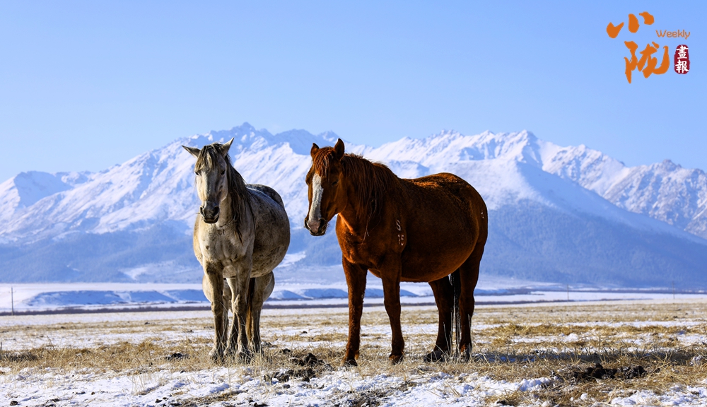 一場(chǎng)春雪后,山丹馬場(chǎng)天空湛藍(lán),祁連山巍巍壯觀。成群的駿馬在這片廣袤無垠的草原上或低頭吃草,或奔跑嬉戲,成為雪地里一道靚麗的風(fēng)景。