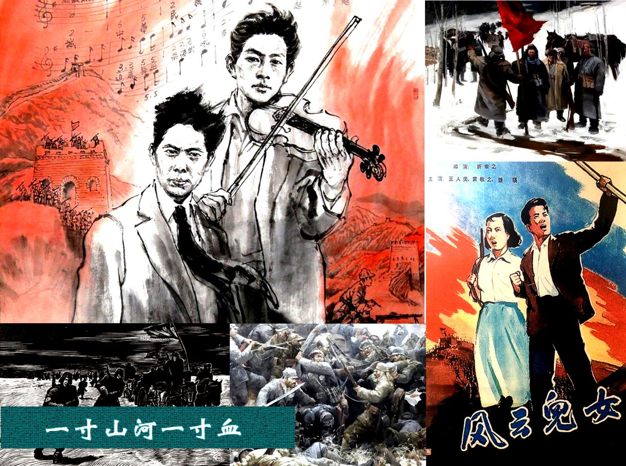 ⑤一曲狂飆:指《義勇軍進(jìn)行曲》?!?a >義勇軍進(jìn)行曲》面世后,立即成為廣泛流傳的抗戰(zhàn)歌曲。世界反法西斯戰(zhàn)爭即將結(jié)束之際,該曲被選入反法西斯盟軍勝利凱旋的曲目。戰(zhàn)爭結(jié)束后,同盟國集會時,《義勇軍進(jìn)行曲》作為代表中國的歌曲演奏。美國還將該曲與美國的《美麗的美利堅》、法國的《馬賽曲》等歌曲定為同盟國勝利之日的音樂節(jié)目廣播歌曲。1949年9月27日,中華人民共和國人民政治協(xié)商會議第一屆全體會議通過決議,《義勇軍進(jìn)行曲》為代國歌。1982年12月,中華人民共和國第五屆全國人民代表大會第五次全體會議確定《義勇軍進(jìn)行曲》為中華人民共和國國歌。2004年3月14日,中華人民共和國第十屆全國人大二次會議通過的憲法修正案規(guī)定“中華人民共和國國歌是《義勇軍進(jìn)行曲》”。《義勇軍進(jìn)行曲》作為國歌,正式被寫入中華人民共和國憲法。