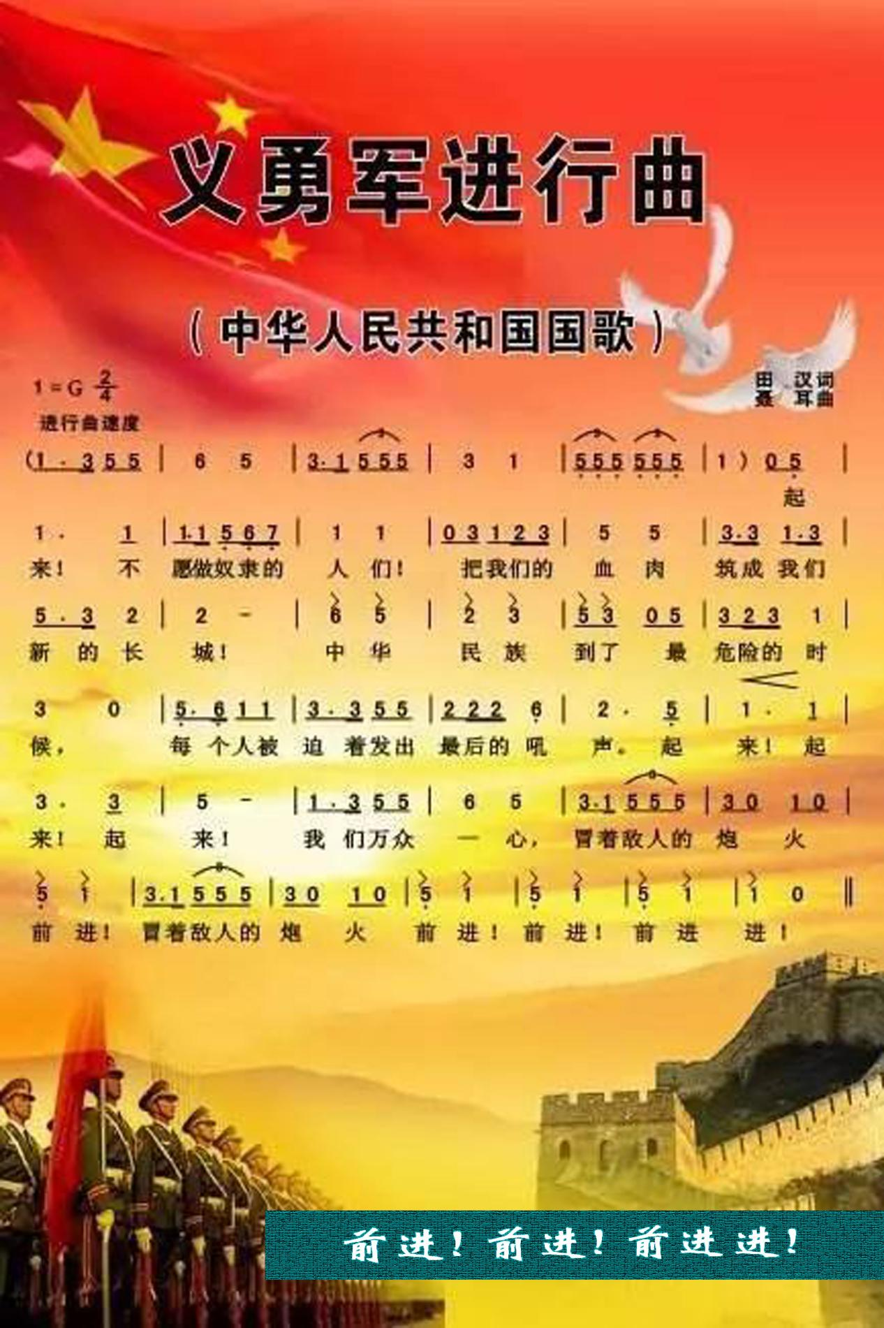 ⑧前進(jìn)!前進(jìn)!前進(jìn)進(jìn)?。骸读x勇軍進(jìn)行曲》這一段歌詞是作曲家聶耳改定的。為了使歌曲曲調(diào)和節(jié)奏更加有力,聶耳把田漢原來的“我們?nèi)f眾一心,冒著敵人的飛機大炮前進(jìn)。前進(jìn)!前進(jìn)!前進(jìn)!”改為“我們?nèi)f眾一心,冒著敵人的炮火,前進(jìn)!冒著敵人的炮火,前進(jìn)!前進(jìn)!前進(jìn)進(jìn)!”全國政協(xié)委員、國家一級指揮、解放軍軍樂團(tuán)前團(tuán)長于海曾談到:“前進(jìn),前進(jìn),前進(jìn)進(jìn)!”這七個字堪稱國歌的點睛之筆。“前進(jìn)進(jìn)”的節(jié)奏感,凸顯了國歌精神的進(jìn)行時態(tài)。正是這種精神一直在指引我們,激勵著我們。