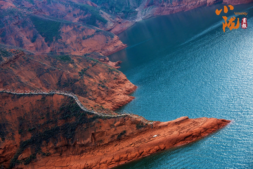 附近山塬如“神龍?zhí)阶?rdquo;般伸進庫區(qū),碧綠水色與赭色丹霞相映成趣,紅巖綠水相融相撞,沒有絲毫違和感。從大橋邊的公路上山,可以鳥瞰整個庫區(qū)和大橋美景,開闊的水域讓你心曠神怡,一道飛虹橫跨波光粼粼的庫區(qū),夕陽照耀下,滿眼瑰麗。