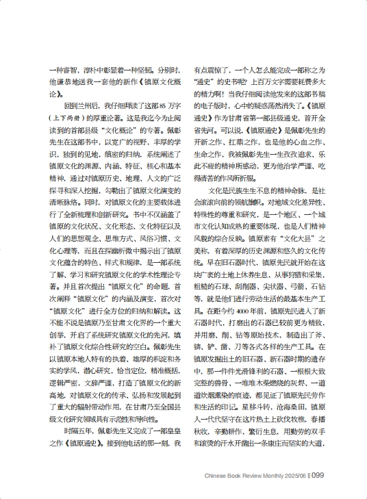 喜聞佩彰先生嘔心瀝血的第二部學(xué)術(shù)專著——《鎮(zhèn)原通史》完稿付梓,即將由中國文史出版社出版,我既為佩彰先生筆耕不輟、潛心研究本土文化的頑強(qiáng)毅力而欽佩,也為家鄉(xiāng)能有如此一部賡續(xù)歷史、連接未來的開山之作而欣慰。