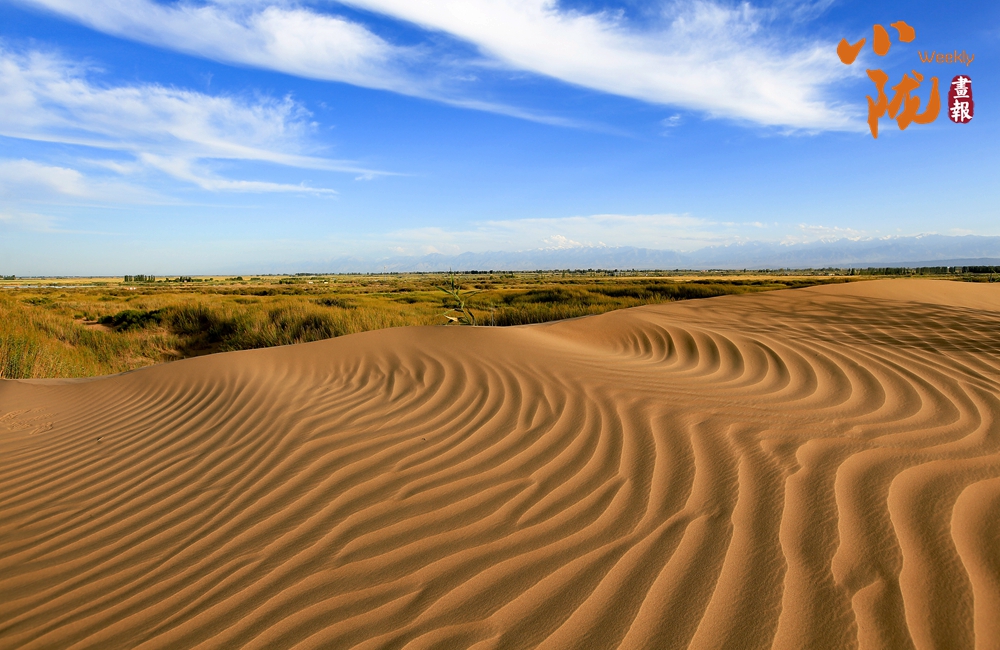 站在綠洲與大漠的結(jié)合處,觀賞四方風(fēng)景,眼前奇異的景致讓人驚嘆萬(wàn)分:一邊是莽莽蒼蒼、雄渾博大、無(wú)邊無(wú)際的大漠海洋,一邊是郁郁蔥蔥、娟秀嫵媚的綠洲碧野。這是大自然杰出的造化,這黃色與綠色之間沒(méi)有任何過(guò)渡,兩色卻形成鮮明的對(duì)比,宛如畫(huà)家手下的色盤(pán),黃綠分明、對(duì)比強(qiáng)烈而又和諧統(tǒng)一,令人叫絕?!?/p>