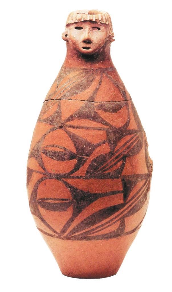 人頭形器口彩陶瓶 仰韶文化 甘肅省博物館藏