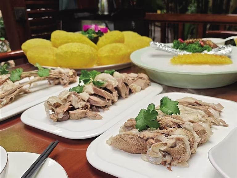 做好的紅燒黃河大鯉魚,端上桌時(shí)香氣撲鼻。魚皮完整不破,入口香脆,魚肉則鮮嫩入味,每一口都能嘗到魚肉的細(xì)膩和湯汁的濃郁,絲毫沒(méi)有土腥味。魚腹處的肉最為肥美,輕輕一抿就化在口中,鮮美的滋味在舌尖蔓延。在夏日的餐桌上,一盤紅燒黃河大鯉魚,不僅是視覺(jué)上的享受,更是味覺(jué)上的盛宴,體現(xiàn)著蘭州人對(duì)黃河饋贈(zèng)的珍視。