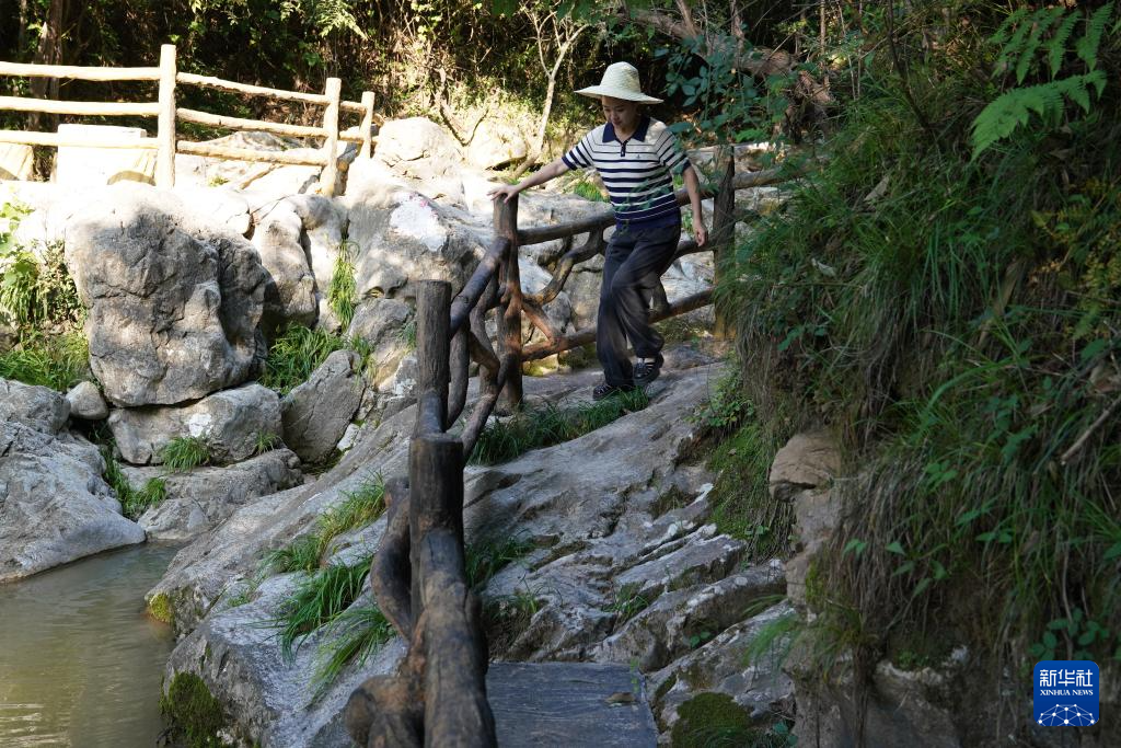 7月14日,游客在青泥嶺古蜀道遺存旁走過(guò)。新華社記者 馬寧 攝