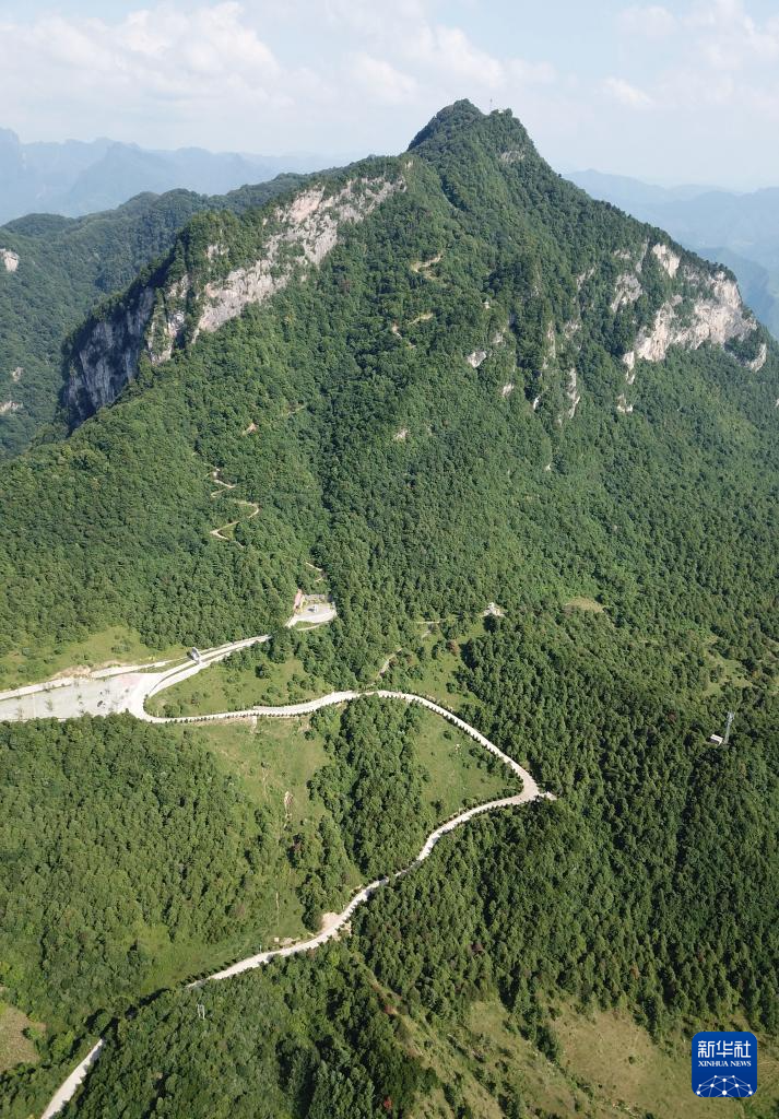 7月14日拍攝的青泥嶺主峰鐵山和鄉(xiāng)村道路(無(wú)人機(jī)照片)。新華社記者 馬寧 攝